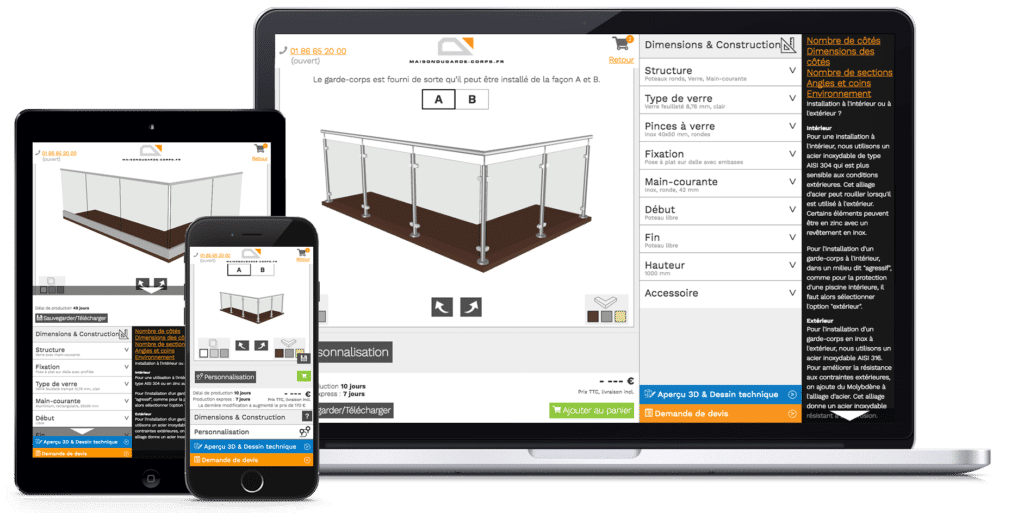 Oui ! Grâce à notre configurateur en ligne, vous pouvez ajuster la hauteur (500 à 1200 mm), choisir une pose à la française ou à l’anglaise, sélectionner un vitrage clair, opale ou teinté gris, opter pour une couleur RAL, ajouter une main courante en aluminium ou en bois, et intégrer des pare-vues si besoin.