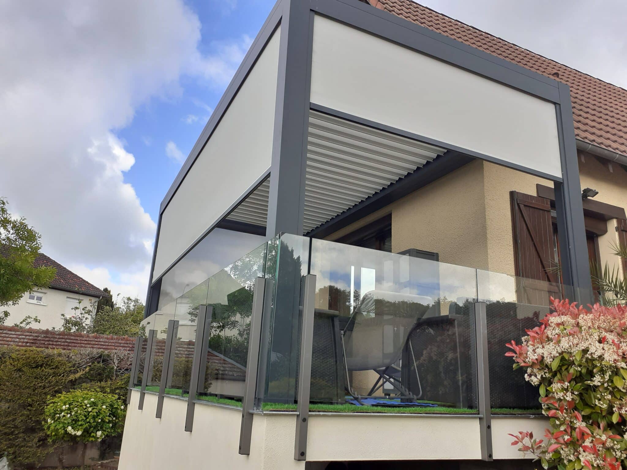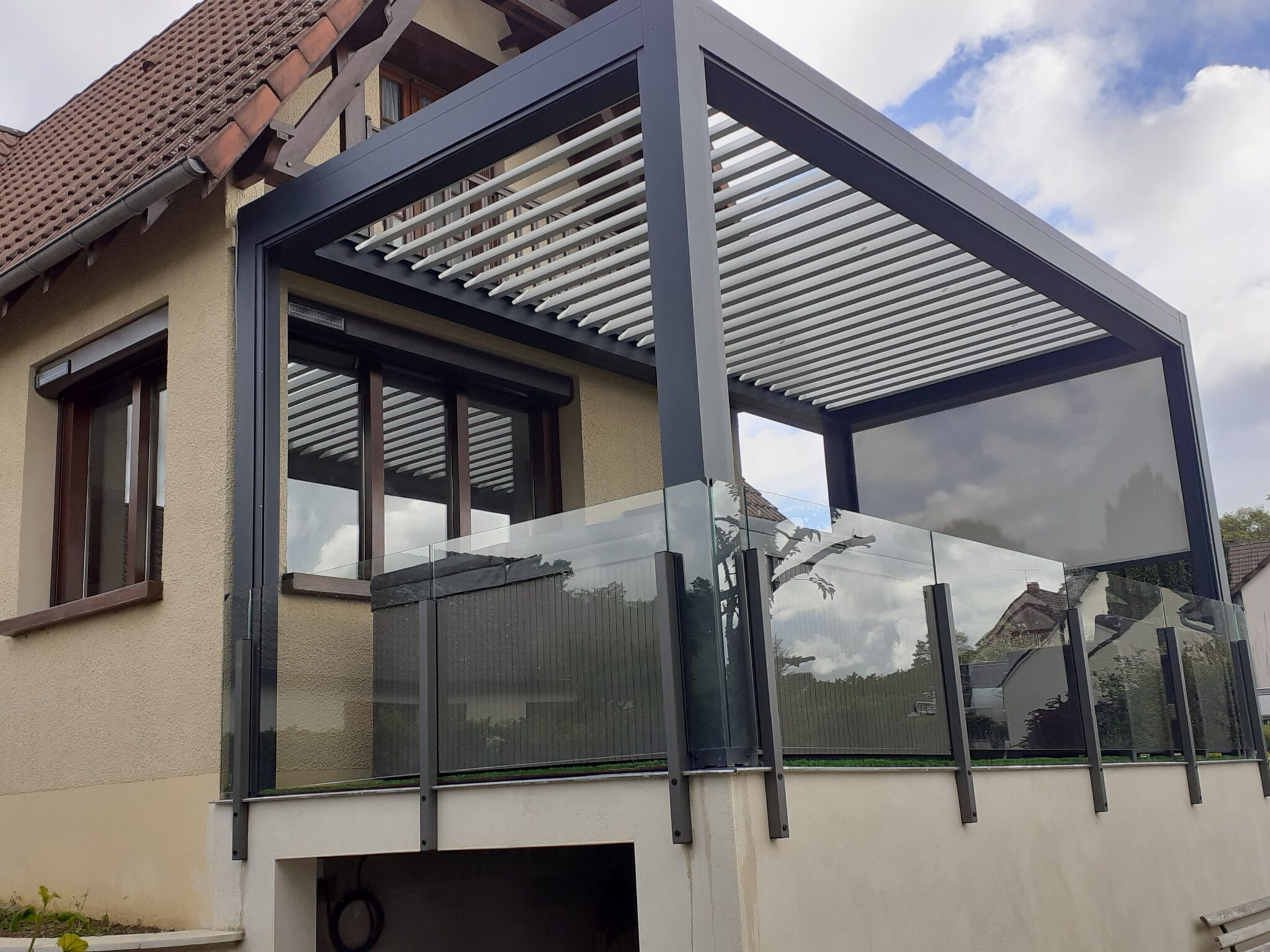 - Effet sans cadre – grands panneaux de verre, aluminium discret