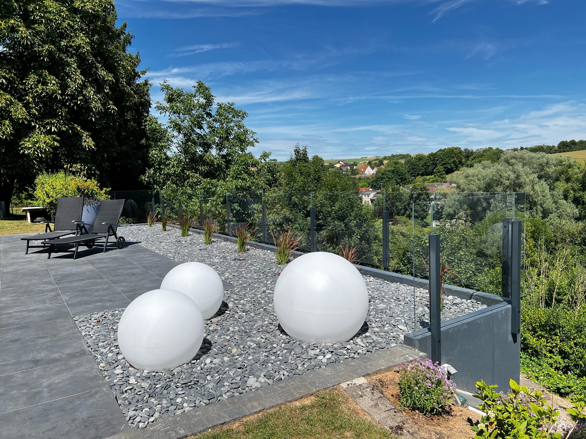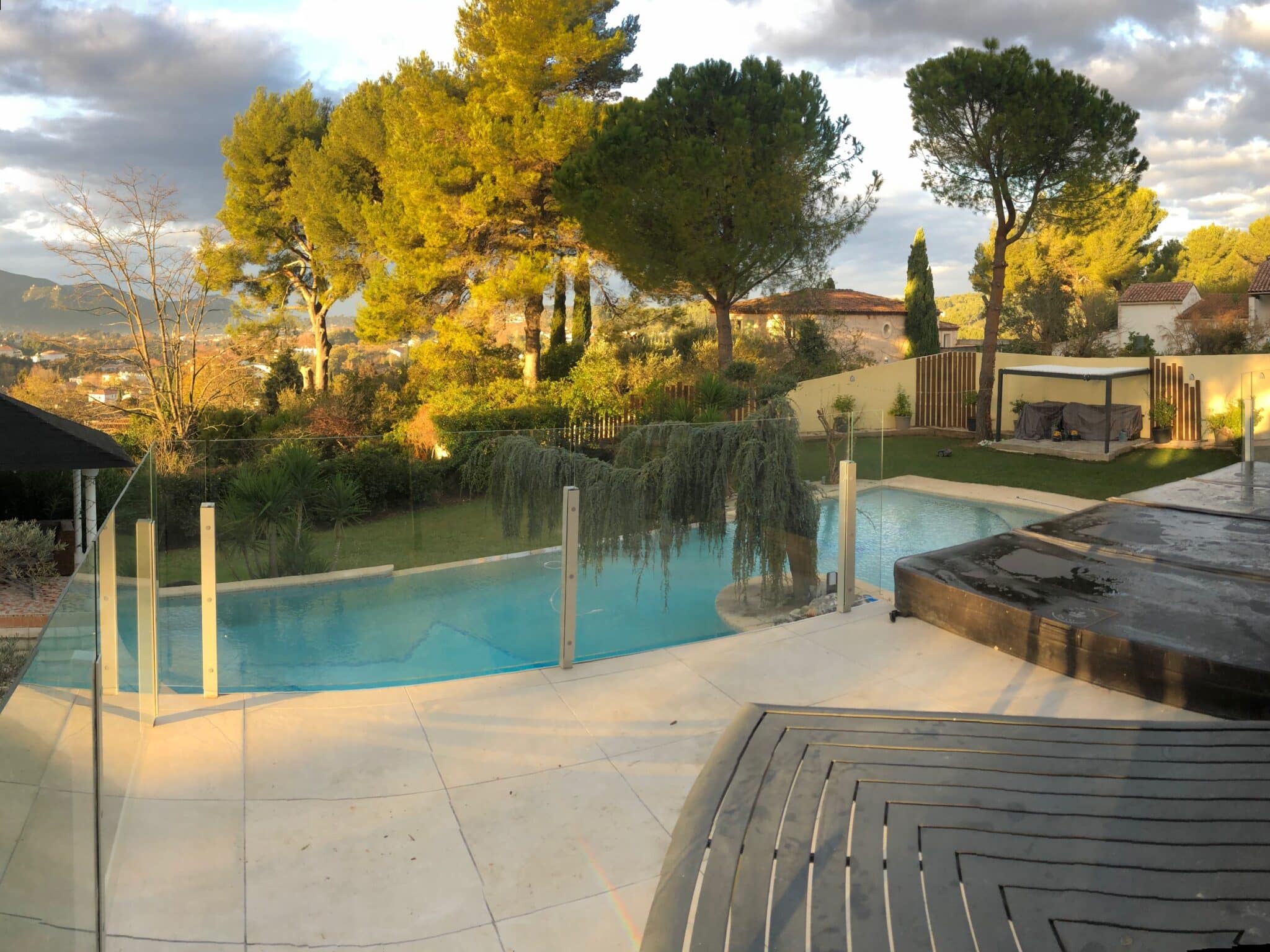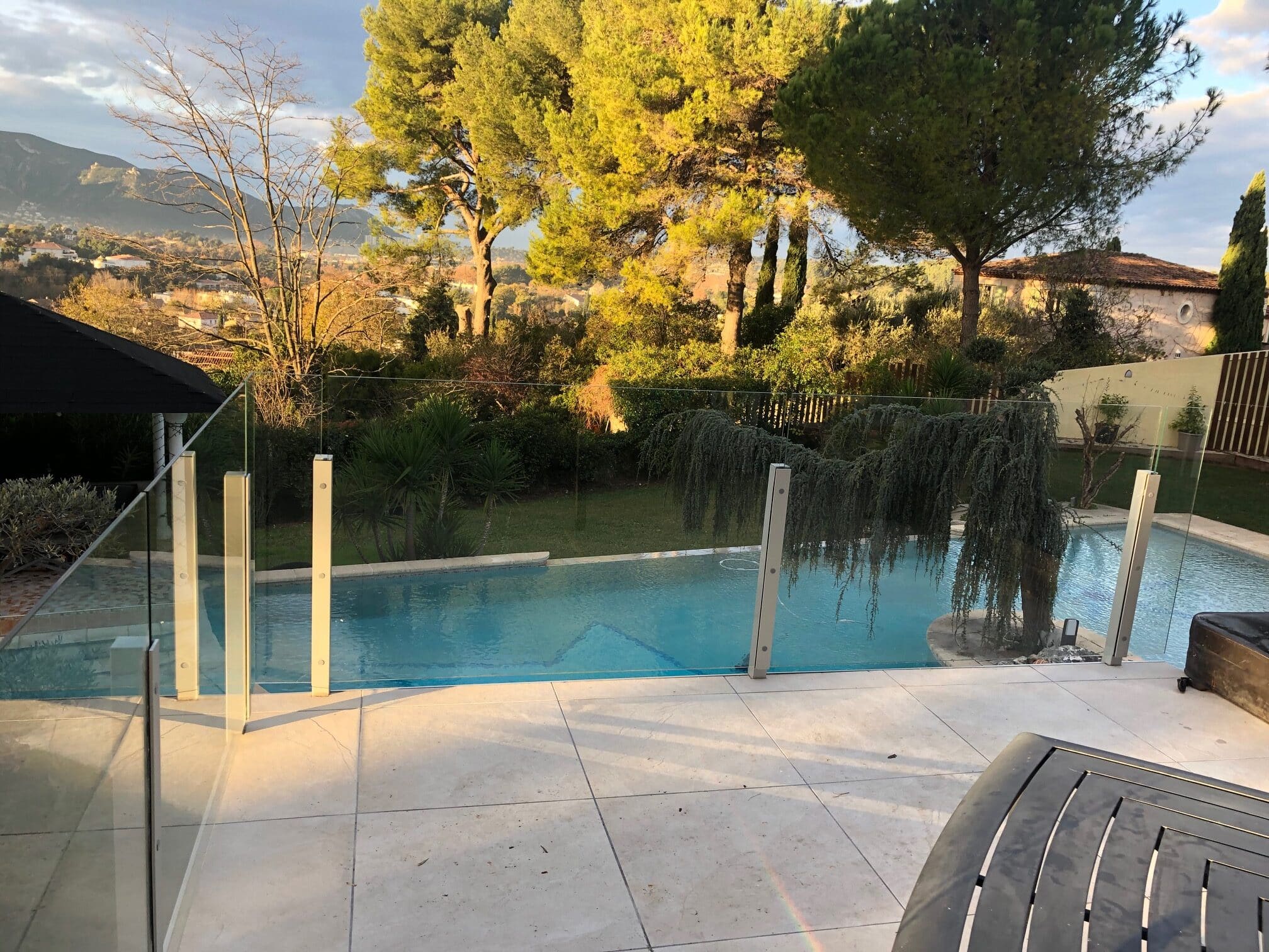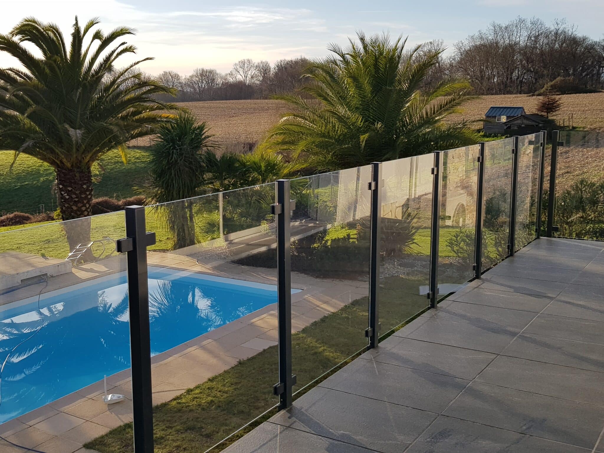 - Garde-corps en verre pour terrasse ou jardin – finition continue et haute résistance aux intempéries